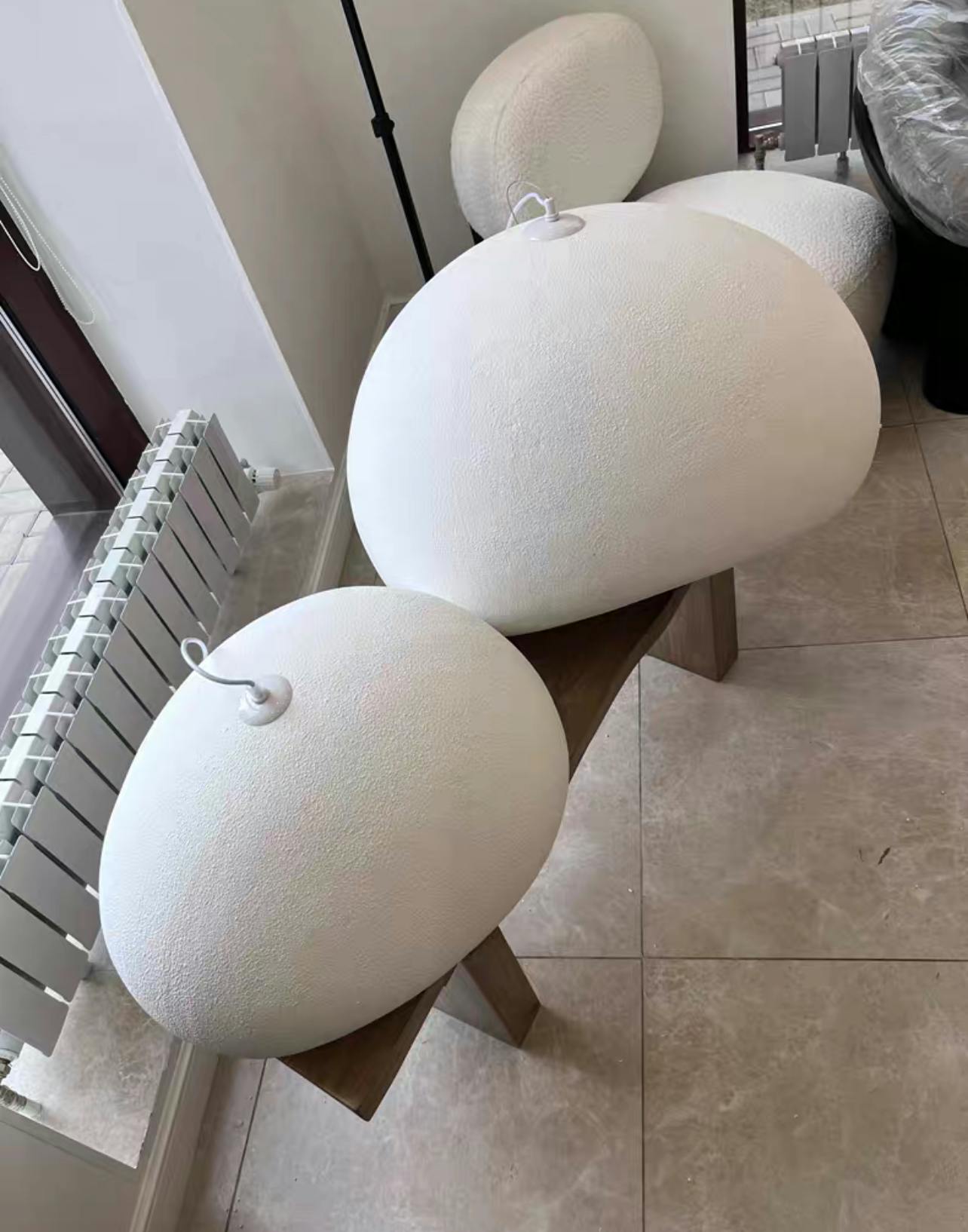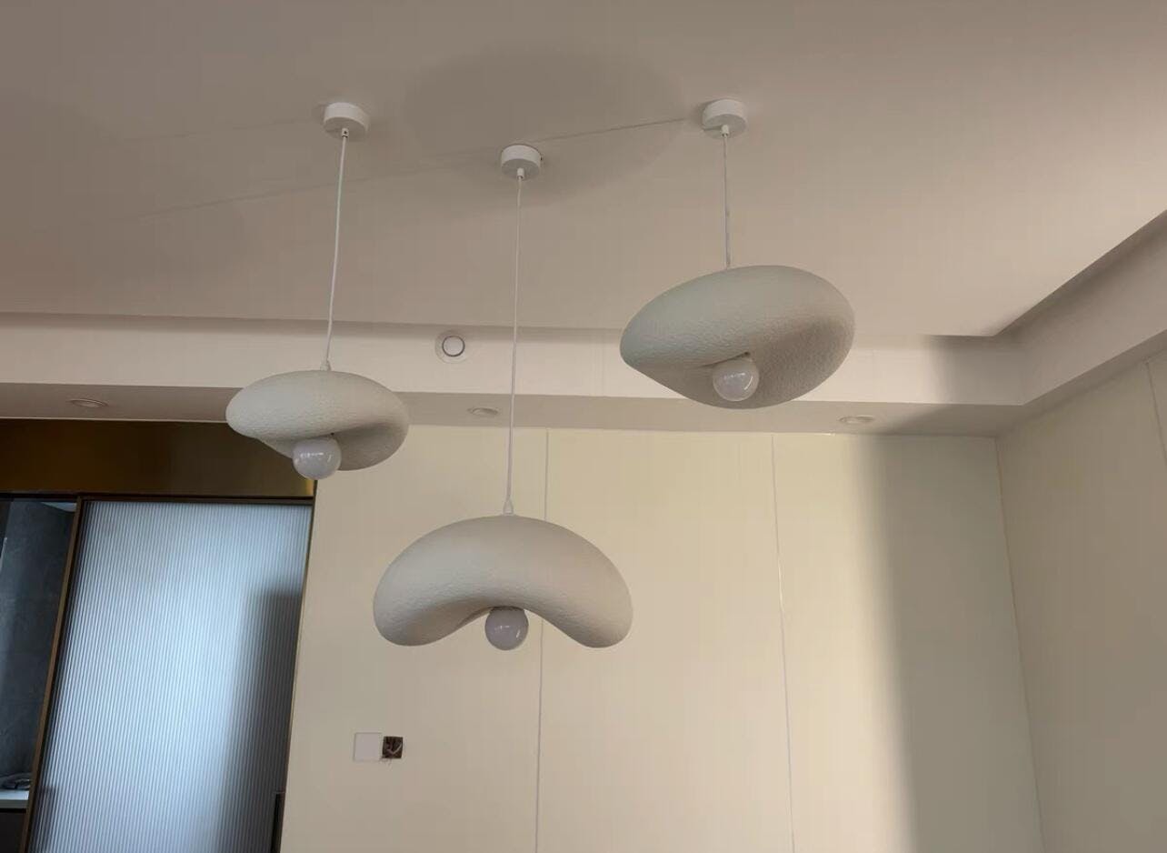 Elevate your space with this stunning set of pendant light fixtures, expertly designed to embody the principles of wabi-sabi and industrial aesthetics. Each fixture hangs gracefully from the ceiling, showcasing a harmonious blend of raw materials and organic forms that celebrate imperfection and simplicity. Ideal for modern interiors, these lights not only illuminate your room, but also serve as striking focal points, enhancing the overall ambience with their unique character and charm.
