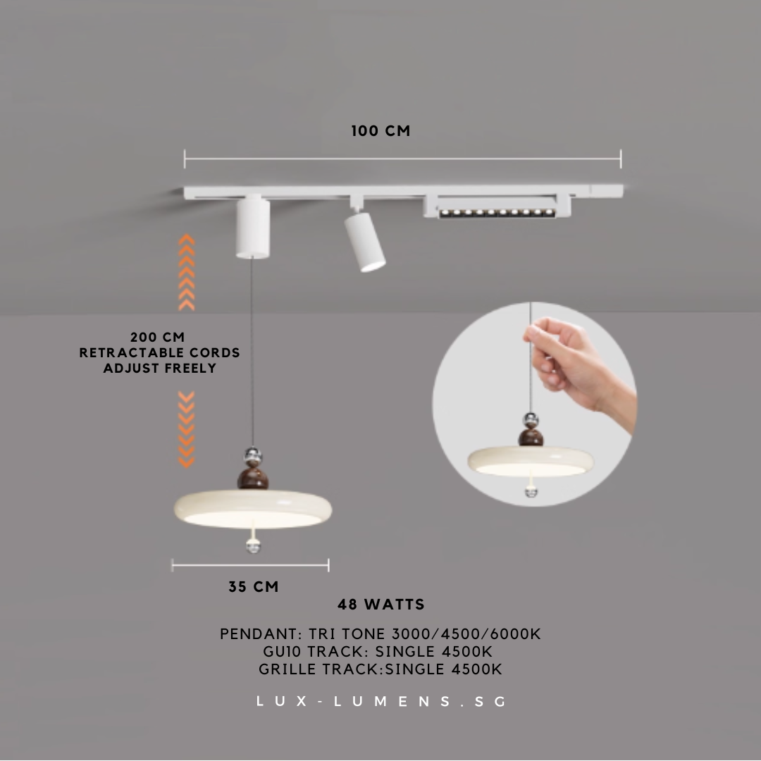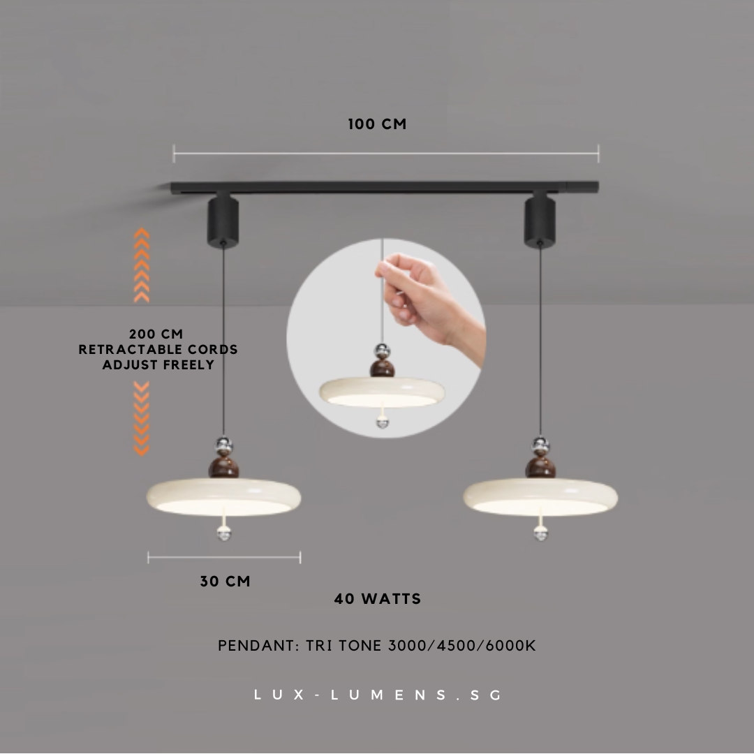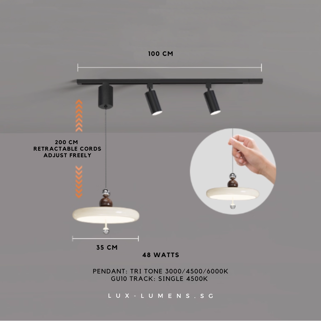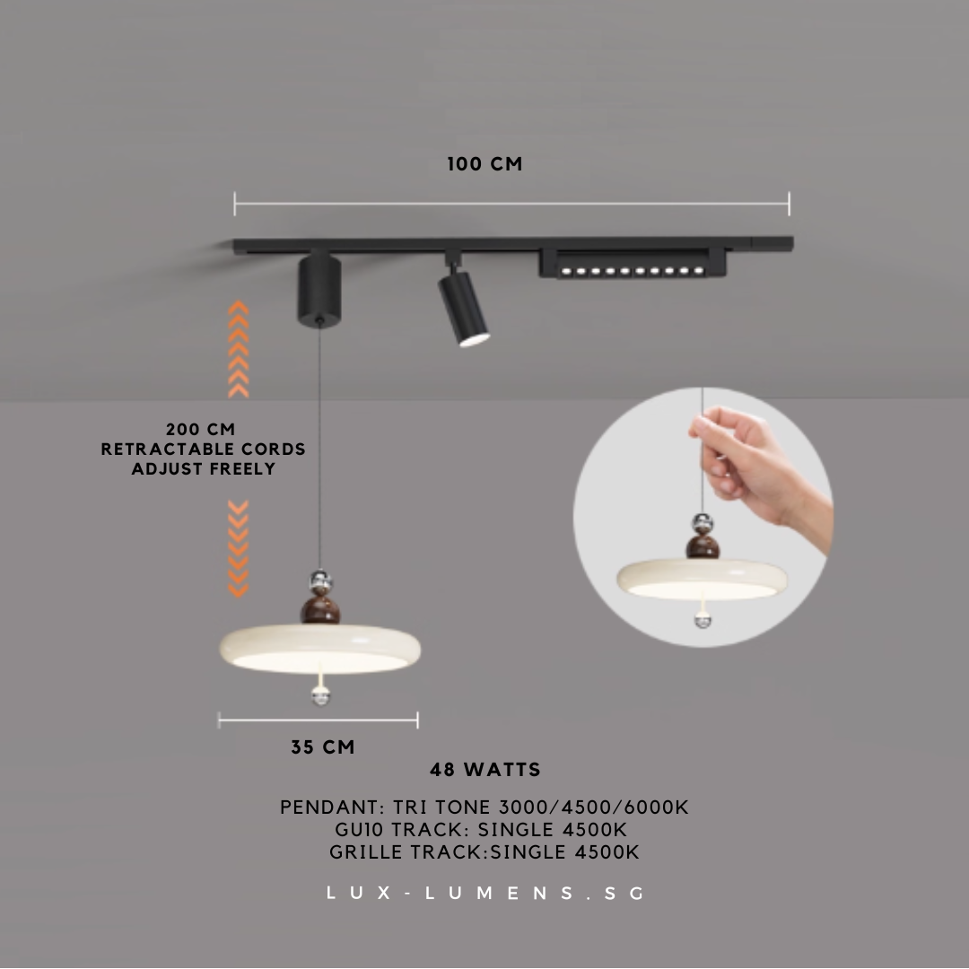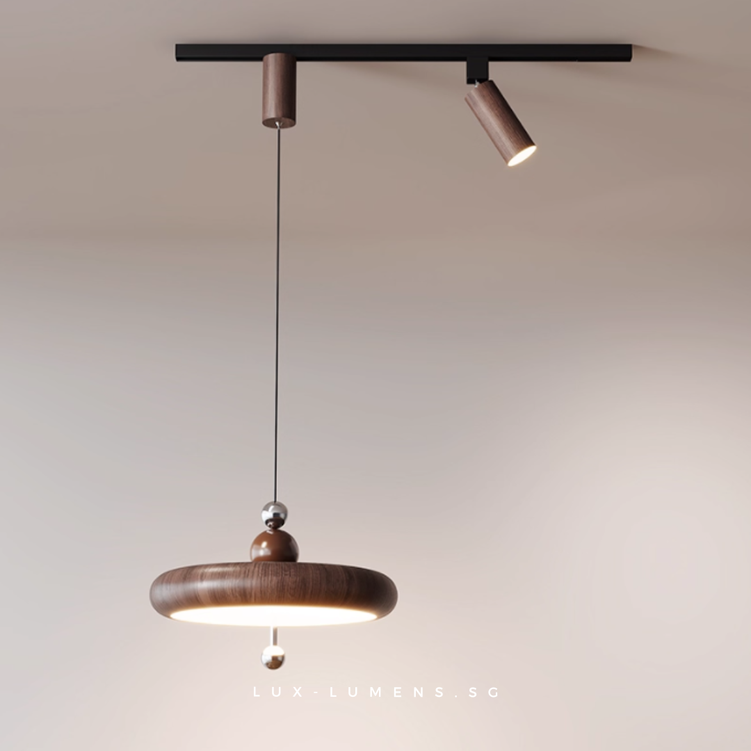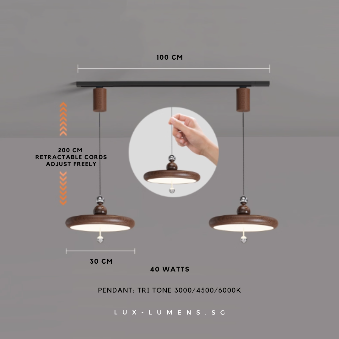 wood finishes (oven-baked for long-lasting effects) bring forth an avant-garde feel to your ambience. Its functional design is designed with the intent to allow the utilization of very popular track lights & pendant lights in today's context, whilst eliminating the need for messy and costly re-wirings/hacking of ceilings.