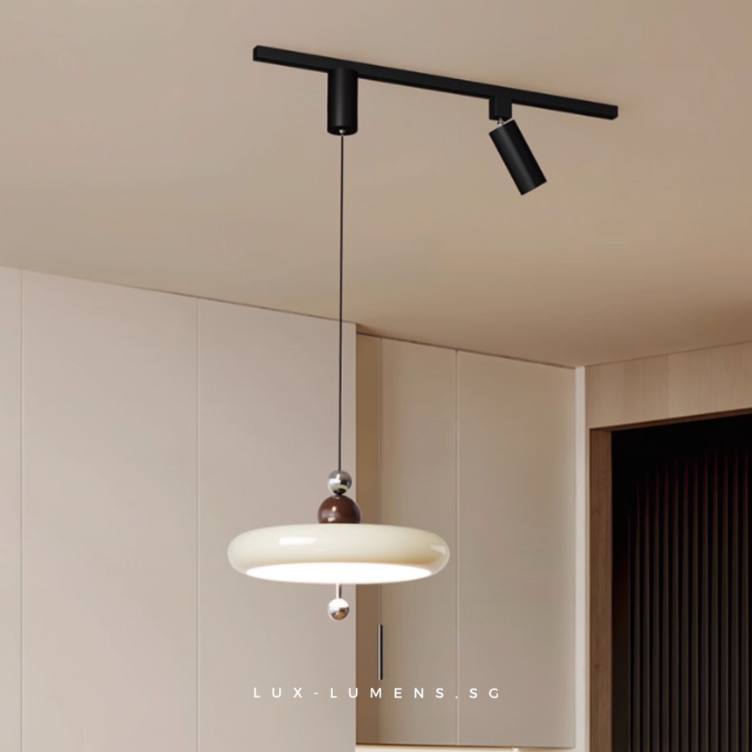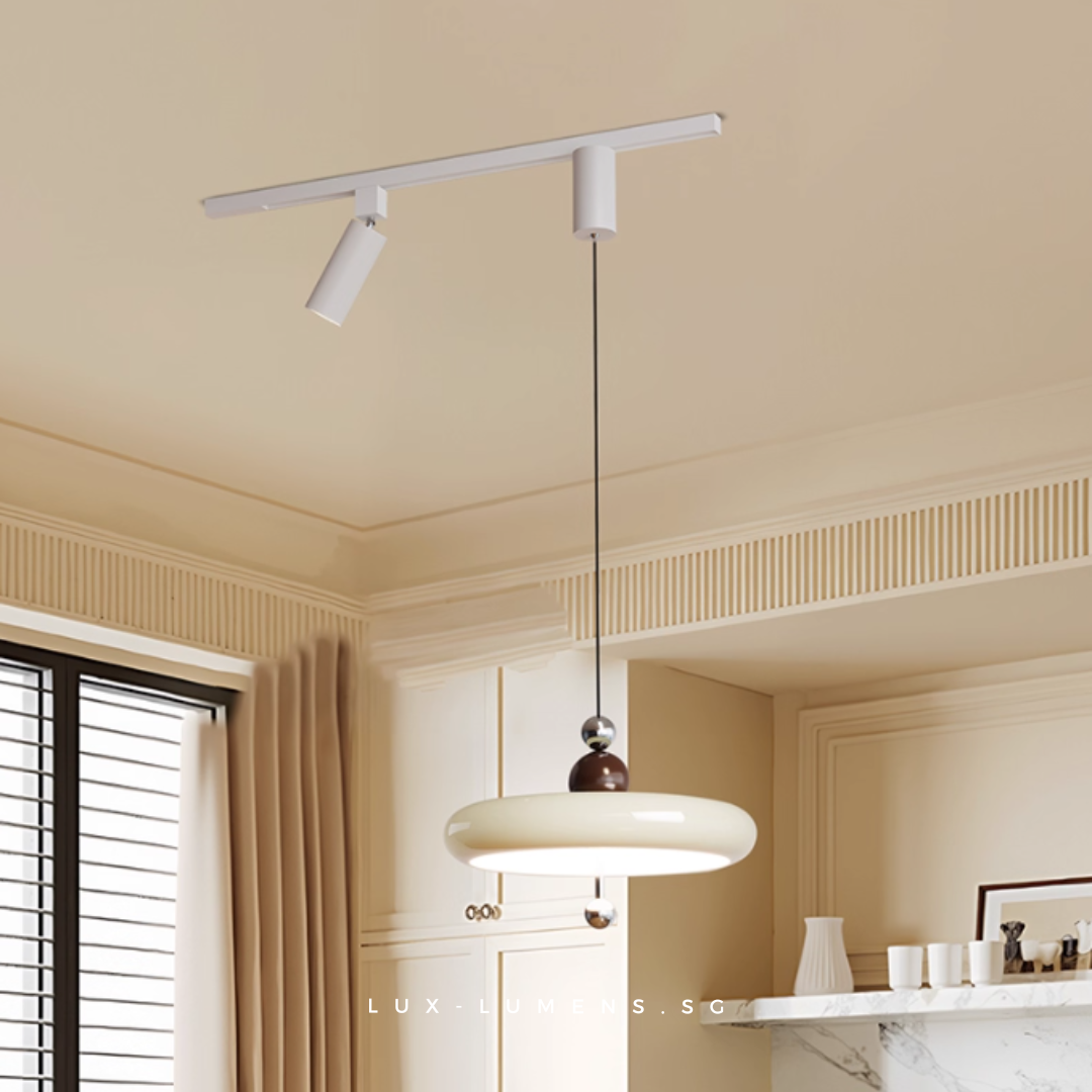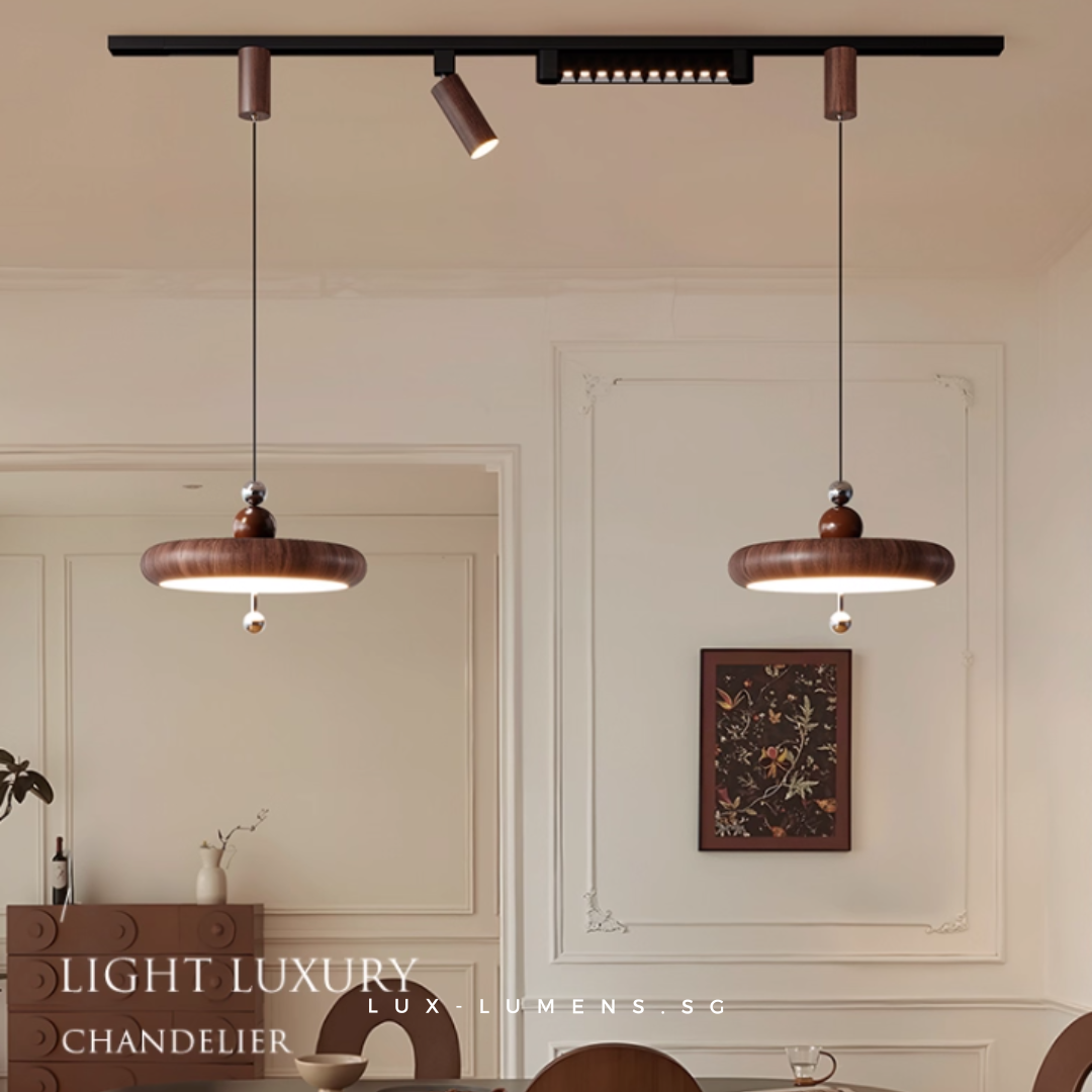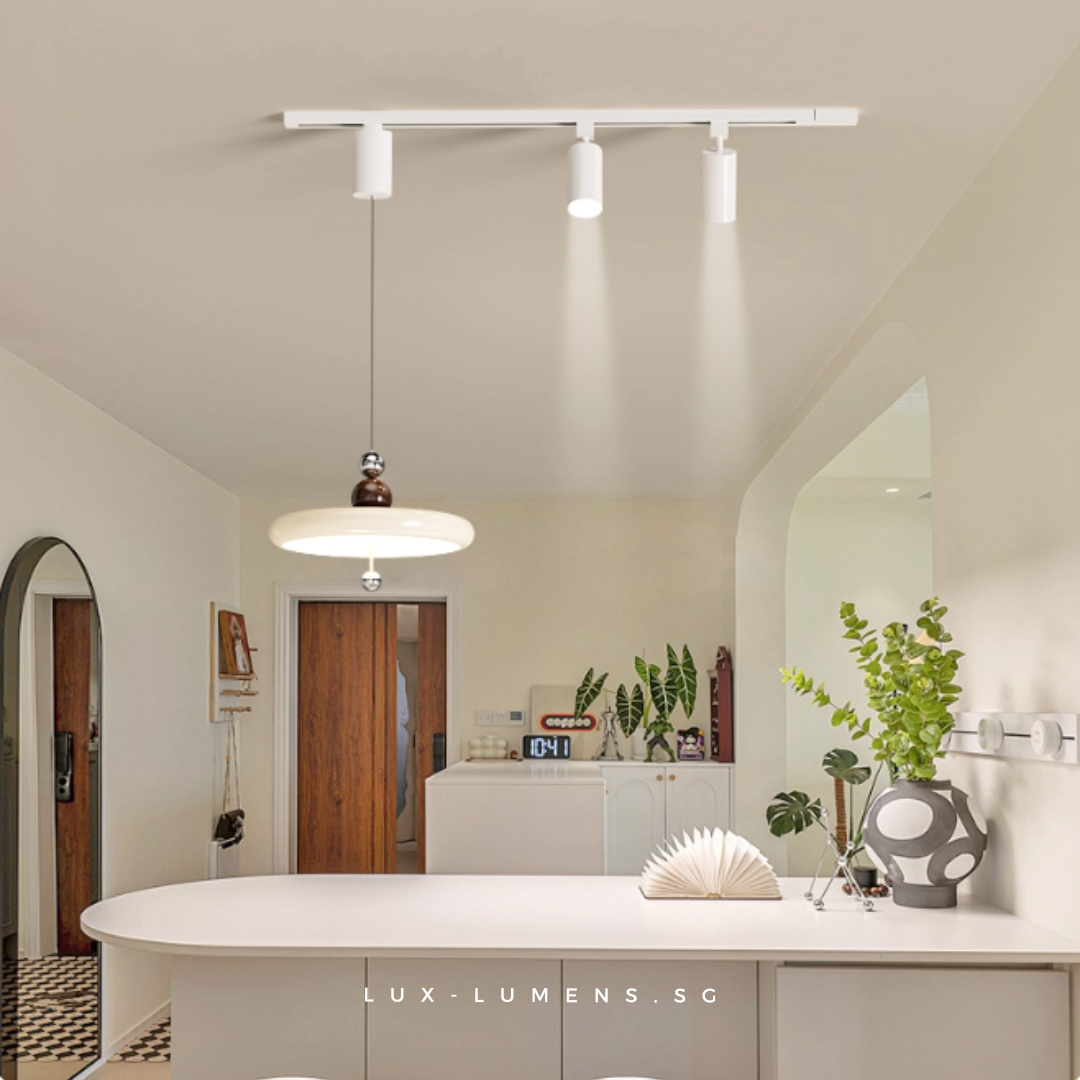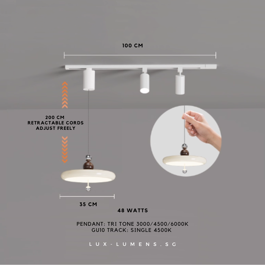 wood finishes (oven-baked for long-lasting effects) bring forth an avant-garde feel to your ambience. Its functional design is designed with the intent to allow the utilization of very popular track lights & pendant lights in today's context, whilst eliminating the need for messy and costly re-wirings/hacking of ceilings.